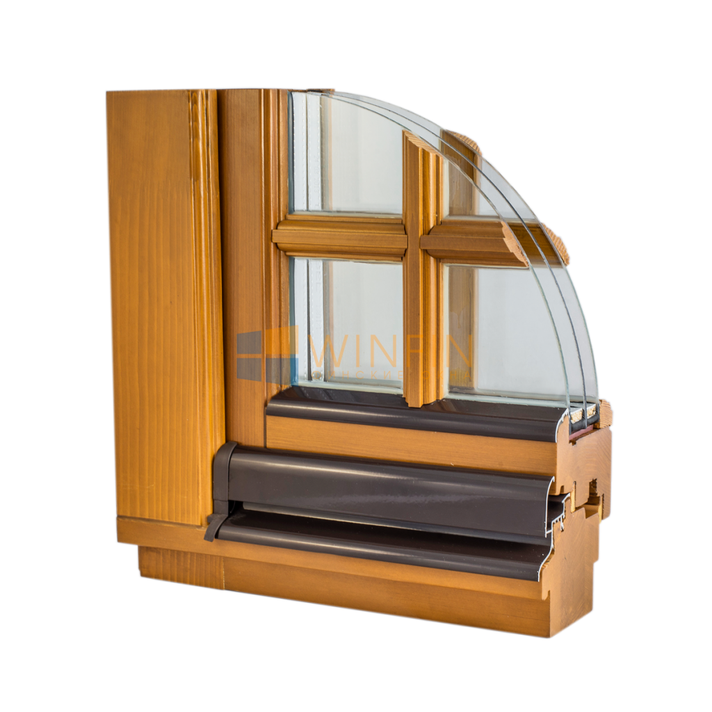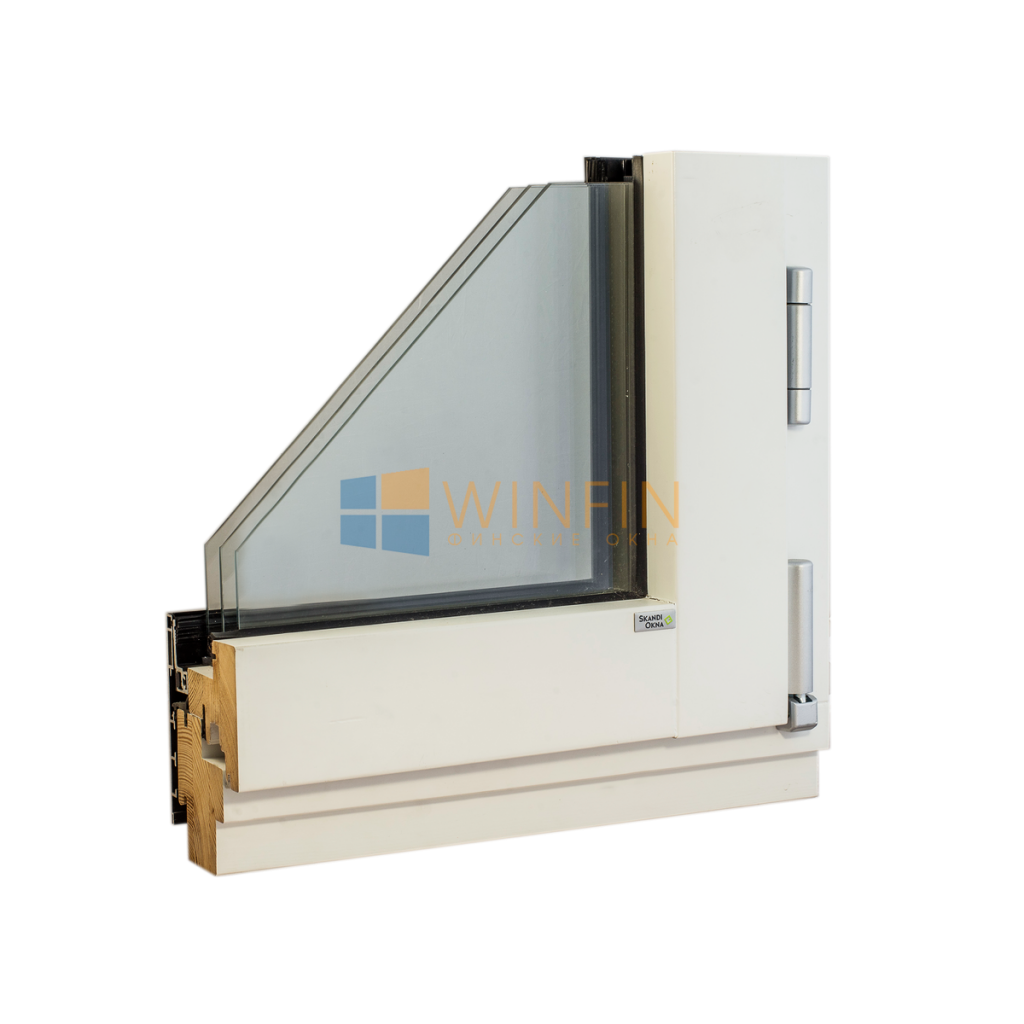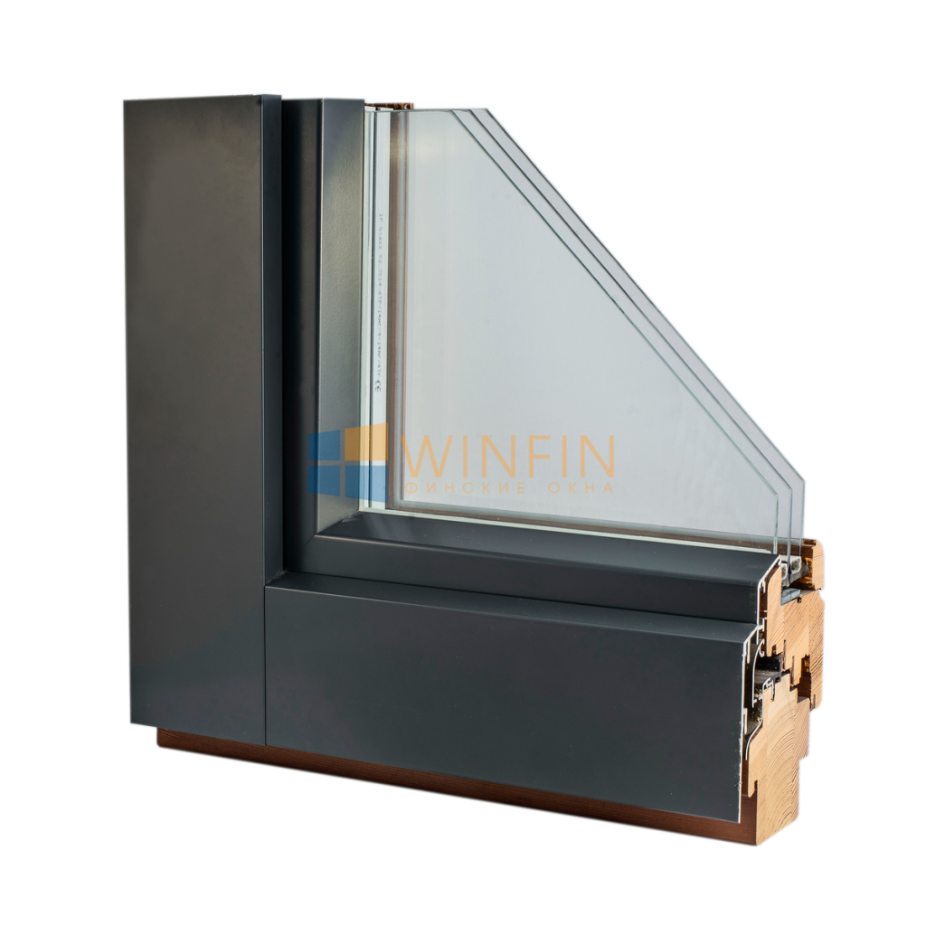 Деревянное окно из сосны и алюминия, профиль 210 мм.